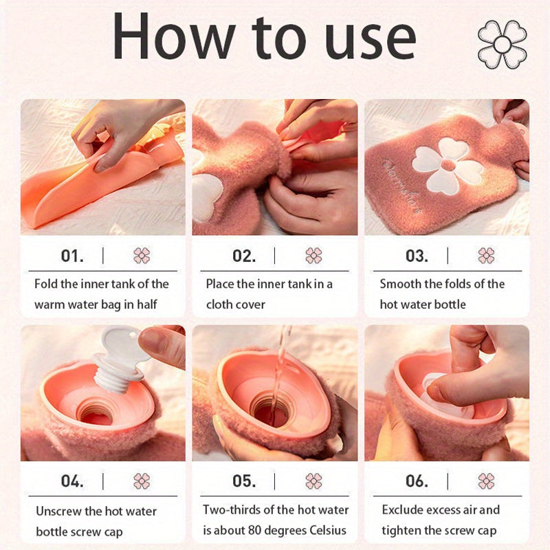 Bolsa de Agua Caliente con Funda Suave – 500/1000 ml ¡Disfruta de la calidez y el confort con nuestra bolsa de agua caliente! Perfecta para aliviar dolores de hombros, calambres menstruales o mantener tus manos y pies cálidos en noches frías. Hecha de poliuretano termoplástico (TPU) de alta calidad, esta bolsa es duradera y fácil de usar.